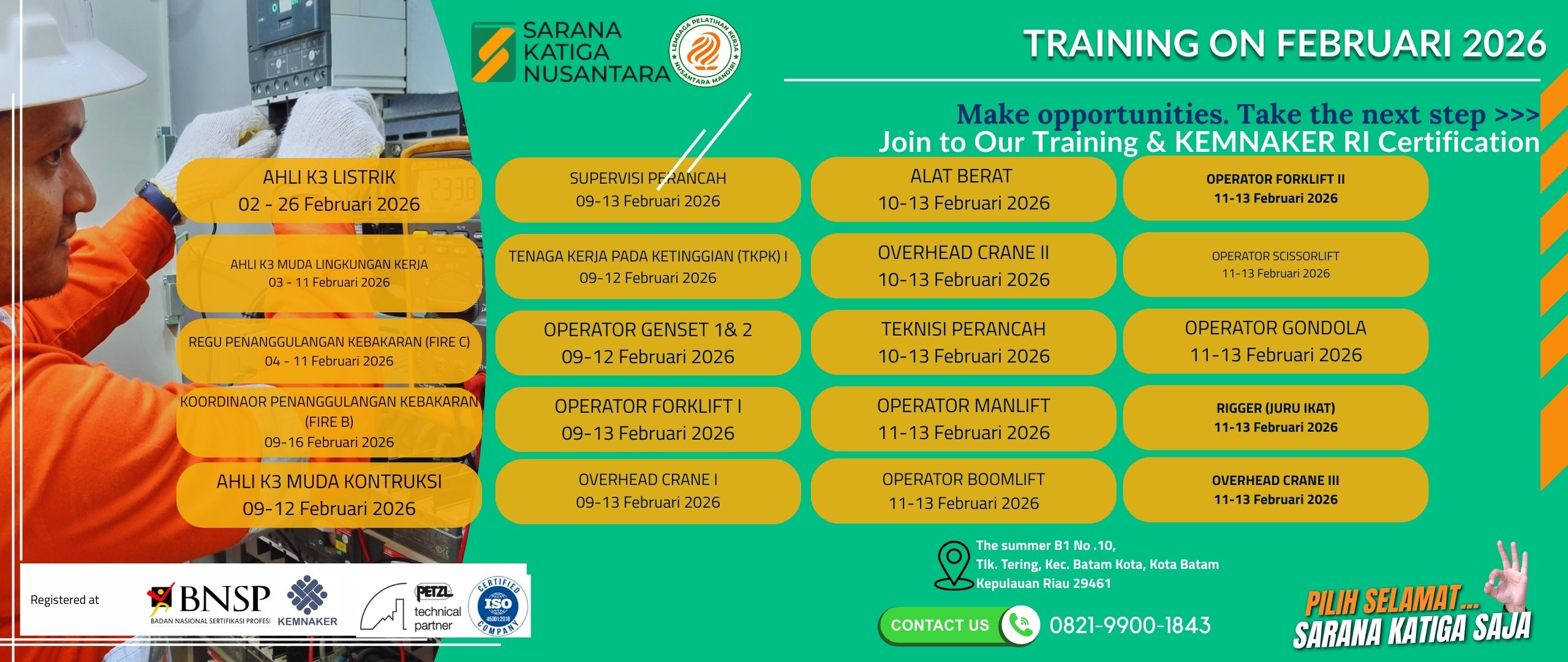 Pelatihan dan Sertifikasi K3 Umum di Batam, program resmi BNSP untuk tenaga kerja profesional dengan sertifikat kompetensi nasional dan tenaga kerja berbudaya K3.