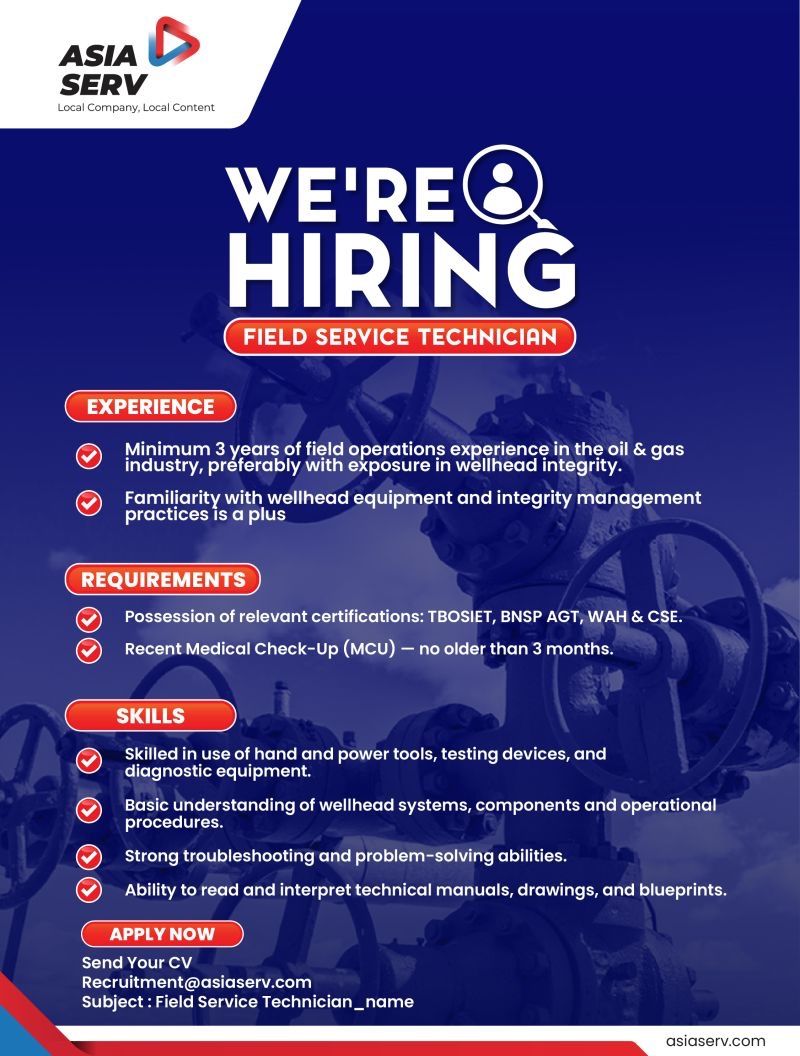 Lowongan Field Service Technician – Asia Serv (Oil & Gas)