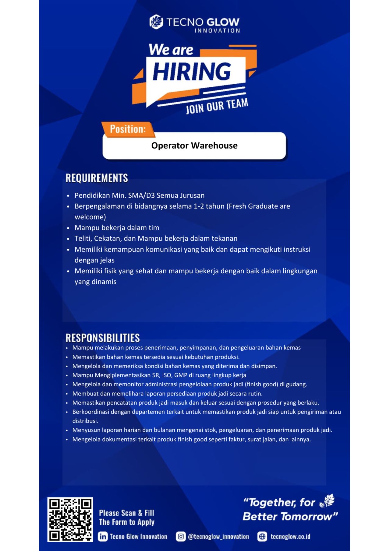 (Pada poster: “Please Scan & Fill The Form to Apply” — kamu bisa menautkan QR/form yang sama.) -
