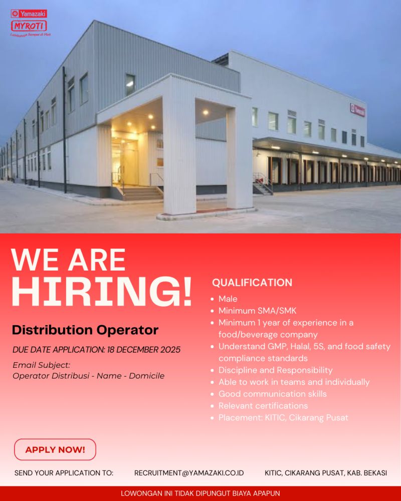 Jika kamu tertarik berkarir di industri makanan dan minuman, posisi Operator Distribusi ini bisa menjadi langkah awal yang tepat.