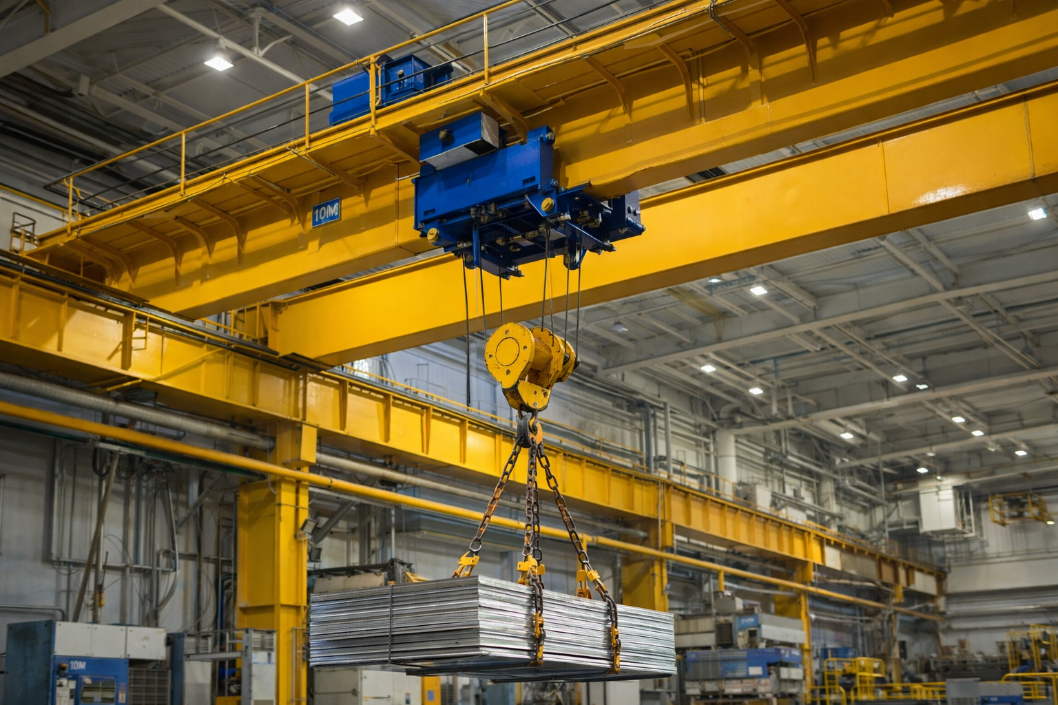 Dalam praktik industri, overhead crane sangat penting untuk mengangkat dan memindahkan material berat seperti Komponen mesin, Bahan baku produksi, Baja dan logam, Cetakan industri, Peralatan konstruksi. Dengan menggunakan crane ini, proses pemindahan material dapat dilakukan secara lebih aman dibandingkan pengangkatan manual.