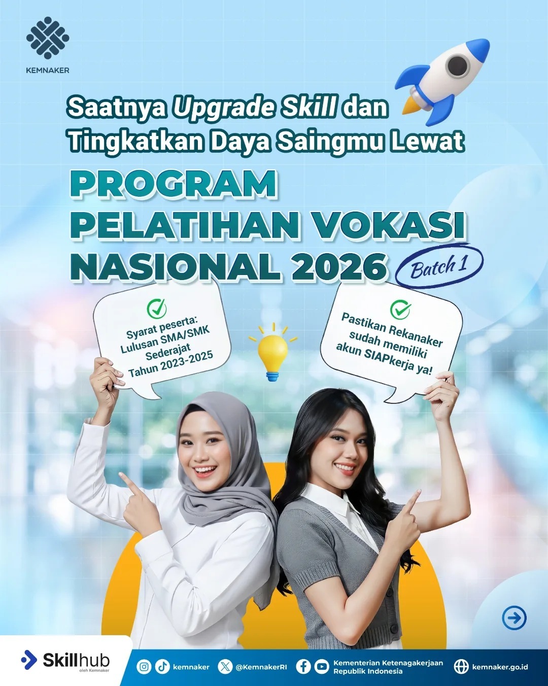 ⚠️ Pendaftaran Pelatihan Vokasi hanya melalui Skillhub Kemnaker.