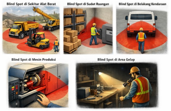 Keselamatan dan Kesehatan Kerja (K3) merupakan aspek krusial dalam setiap aktivitas kerja, baik di sektor industri, konstruksi, pertambangan, logistik, hingga perkantoran. Salah satu penyebab kecelakaan kerja yang sering terjadi namun kerap diabaikan adalah blind spot. Blind spot atau titik buta adalah area yang tidak dapat terlihat secara langsung oleh pekerja, operator alat, atau pengemudi, sehingga berpotensi menimbulkan risiko kecelakaan serius.